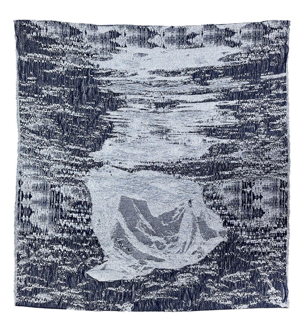 Glaciers Dissolved, 2024, 27" x 40" Jacquard woven fabric, mercerized cotton and indigo dyed bamboo
