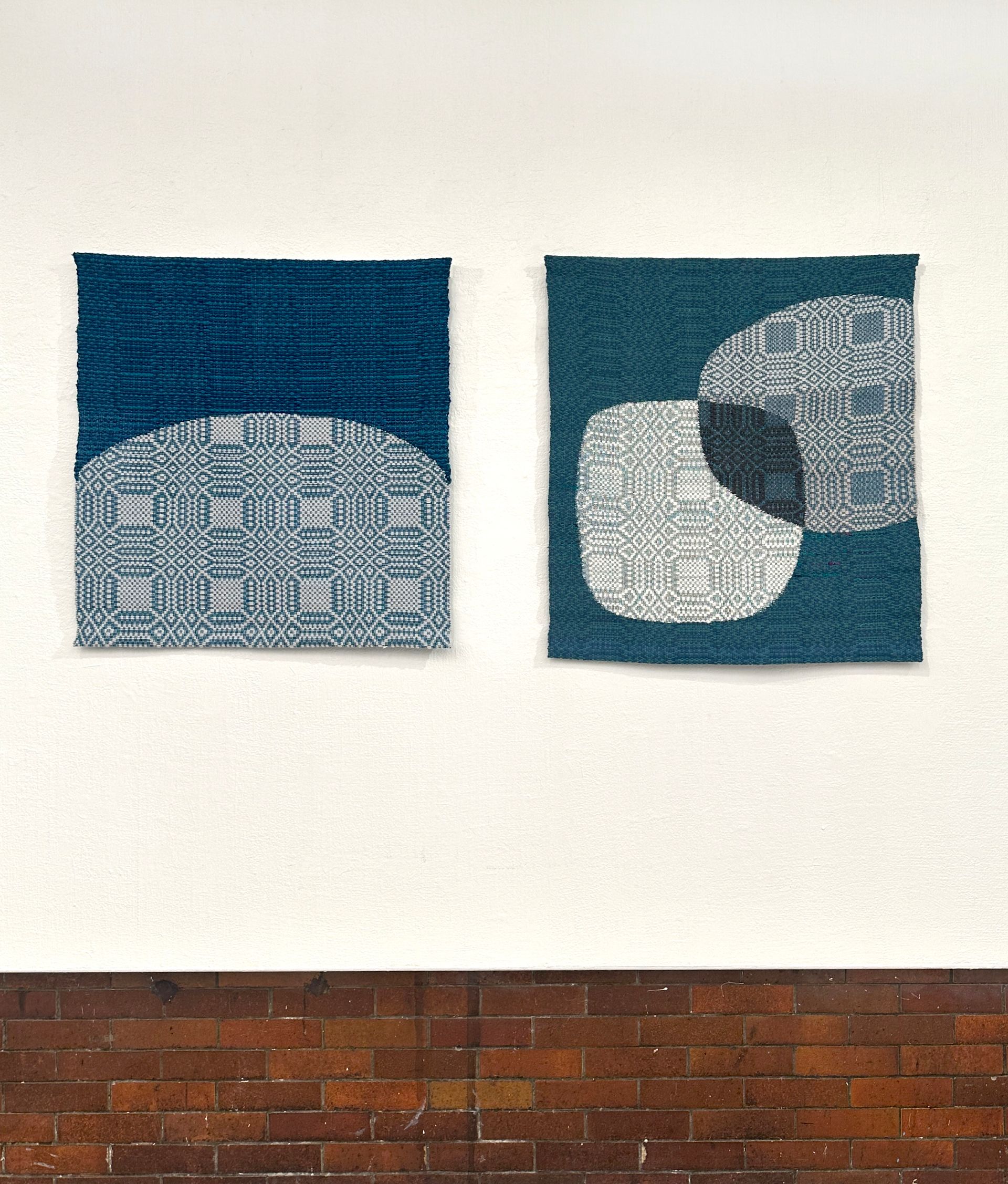 In January 2025, I completed a Praxis Fiber Workshop Digital Weaving Lab residency in Cleveland, OH. This was my second DWL residency and I put 22 yards of warp on their 44” wide TC2. The weavings produced (14 in total) are a mix of works for ongoing my "Many Moons" series and my investigations in to woven ecologies via the Great Pacific Garbage Patch // my recent research into oil slick patterning and spread on water.